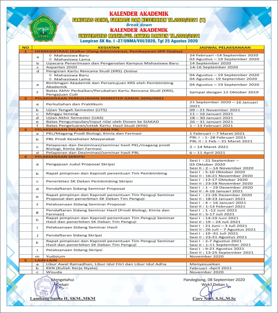 KALENDER AKADEMIK FAKULTAS SAINS, FARMASI DAN KESE...