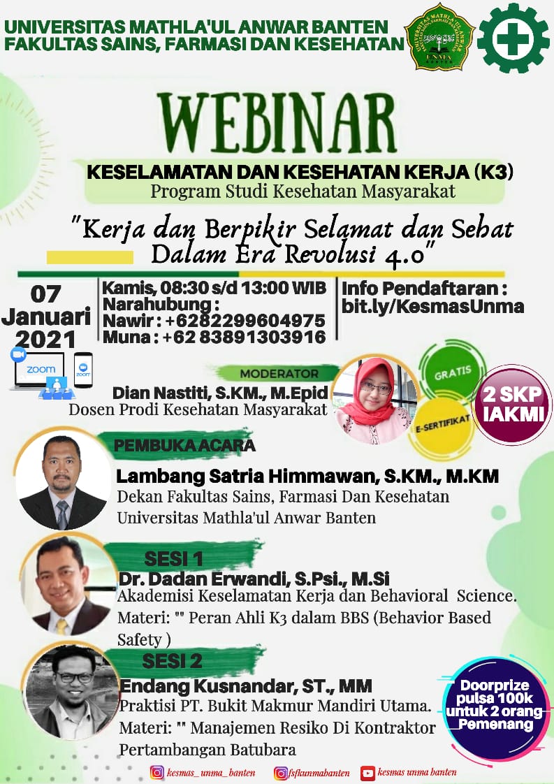 Pendaftaran Webinar Nasional K3. Prodi Kesehatan Masyarakat UNMA BANTEN